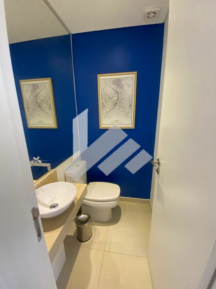 Com 104m², 3 quartos, 3 banheiros, cozinha americana, sala de jantar, sala de visitas, 2 vagas de garagem, área de serviço, quarto de serviço e varanda gourmet com churrasqueira, o apartamento atende às necessidades de espaço e conforto.